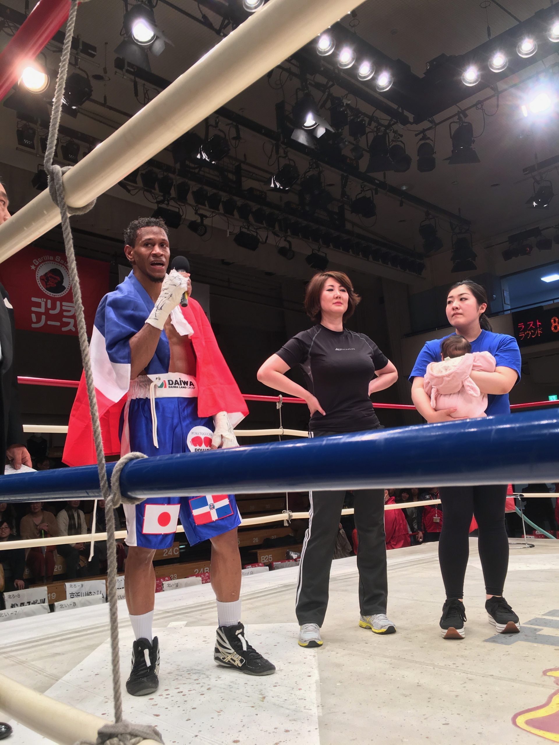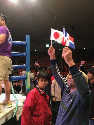 En pasado 8 de Diciembre, el boxeador dominicano Vladimir Baez (“Destino Japan”) ganó sobre Sr. Kazuyasu Okamoto (número 2 del peso superligero en Japón) en la pelea para decidir un retador al título de Japón de peso superligero como TKO en ronda 8. El boxeador desde La Vega como número 1 del peso superligero en Japón, controlaba la pelea en el buen sentido y va a desafiar la pelea por el título del campeonato japonés. Sr. Baez vino Japón en 2016 para realizar su sueño de ser campeón mundial y parte de su sueño va a realizar pronto, gracias por sus esfuerzos y trabajos duros diarios. La Asociación continuará a apoyar sus peleas con la Embajada Dominicana Tokio y sus seguidores en 2018. Esperamos que ustedes se vayan a reunir a nosotros para apoyar el sueño de “Destino Japan.” ¡¡Muchas gracias por su colaboración!!