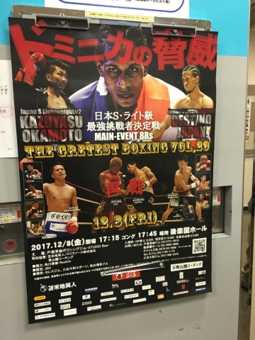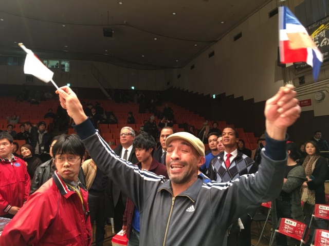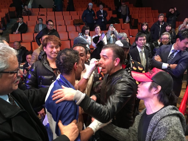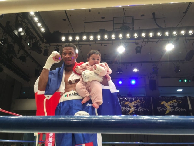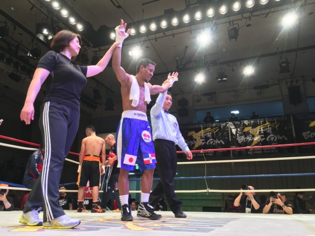 12月8日(金)、後楽園ホールで行われた「日本スーパーライト級最強挑戦者決定戦」にてデスティノ・ジャパン(本名ブラディミール・バエス:ピューマ渡久地ボクシングジム所属)選手が日本スーパーライト級2位の岡本和泰選手(奈良ボクシングジム所属)を8回TKOで破りました。バエス選手は落ち着いた戦いぶりで、最終回までもつれ込んだ戦いを制し、来年行われる予定の日本チャンピオンシップ戦に挑むことが決定しました。世界チャンピオンになるためのチャンスを求めて来日し、日々努力を重ねているバエス選手の夢が一つ実現することになります。当協会は駐日ドミニカ共和国大使館や皆様と共に、バエス選手の戦いを可能な限りサポートして行きたく存じます。来年の試合は皆さんで応援に行きましょう!皆様のサポートの程、何卒宜しくお願い致します。
