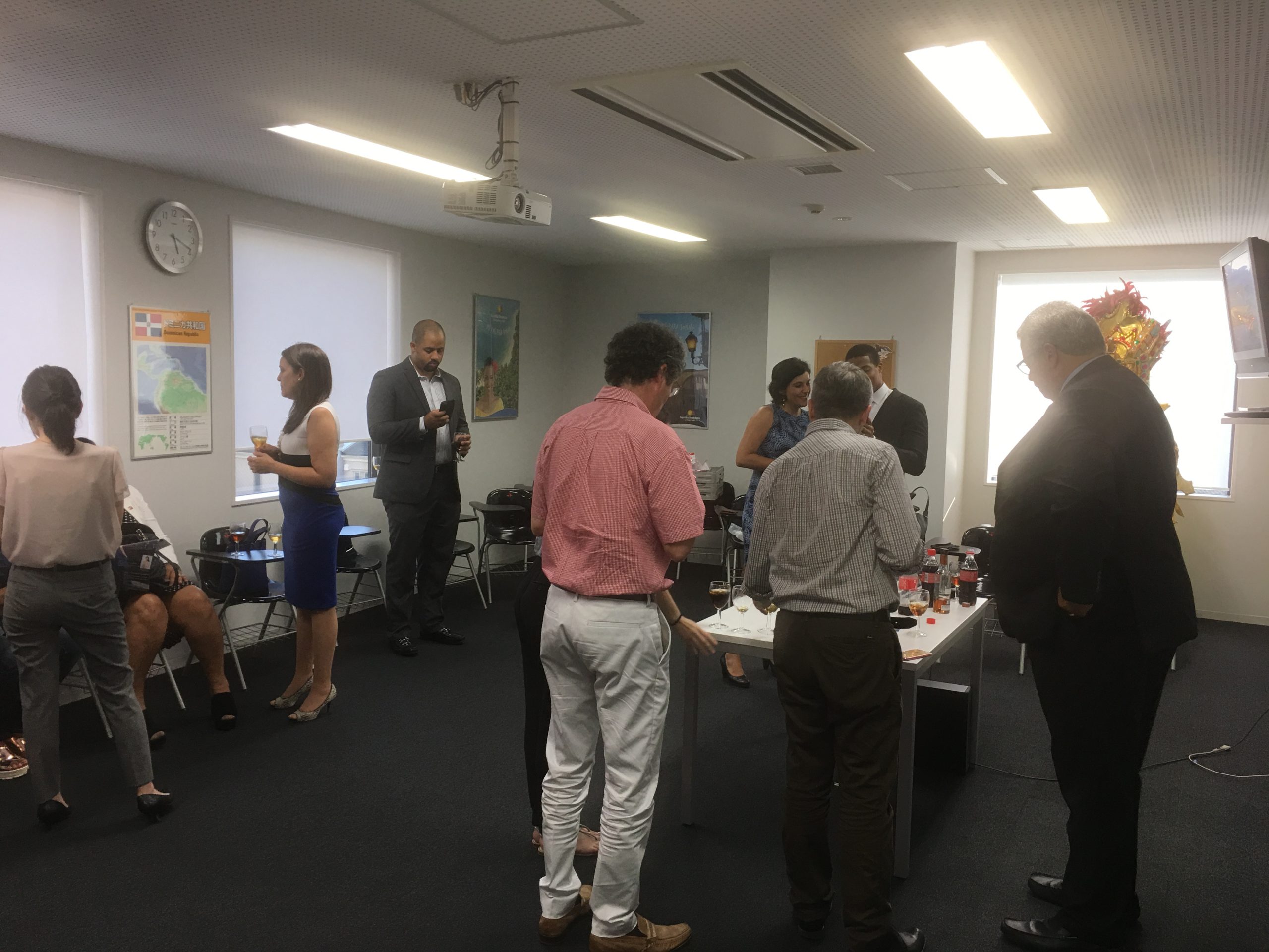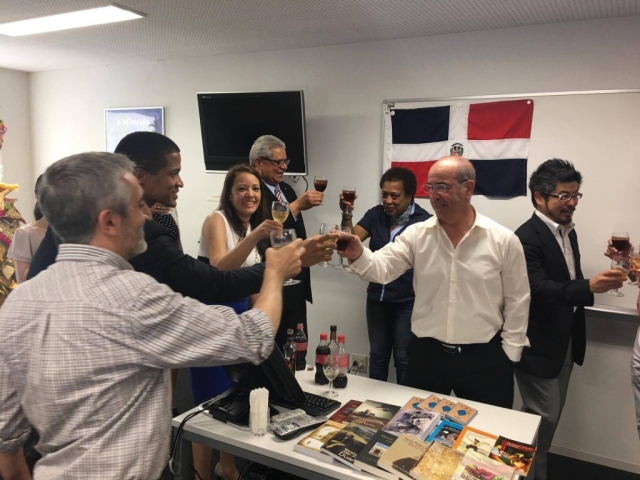 去る7月20日(木)、都内のセルバンテス文化センターにて、ドミニカ共和国の名を冠した教室がオープンしました。ドミンゲス駐日大使閣下、ヒル・デ・カラスコ館長をはじめとする方々がオープニングセレモニーにご出席されました。セルバンテス文化センターはスペイン政府が経営するスペイン及びラテンアメリカ文化を世界に広げるための組織で、スペイン語教育に力を入れています。今回、ラテンアメリカ諸国の名前を各教室に付け、最も大きい部屋の一つにドミニカ共和国の名前が付きました。これを機にスペイン語を学んでいる方々にドミニカ共和国を知ってもらえると嬉しいですね。