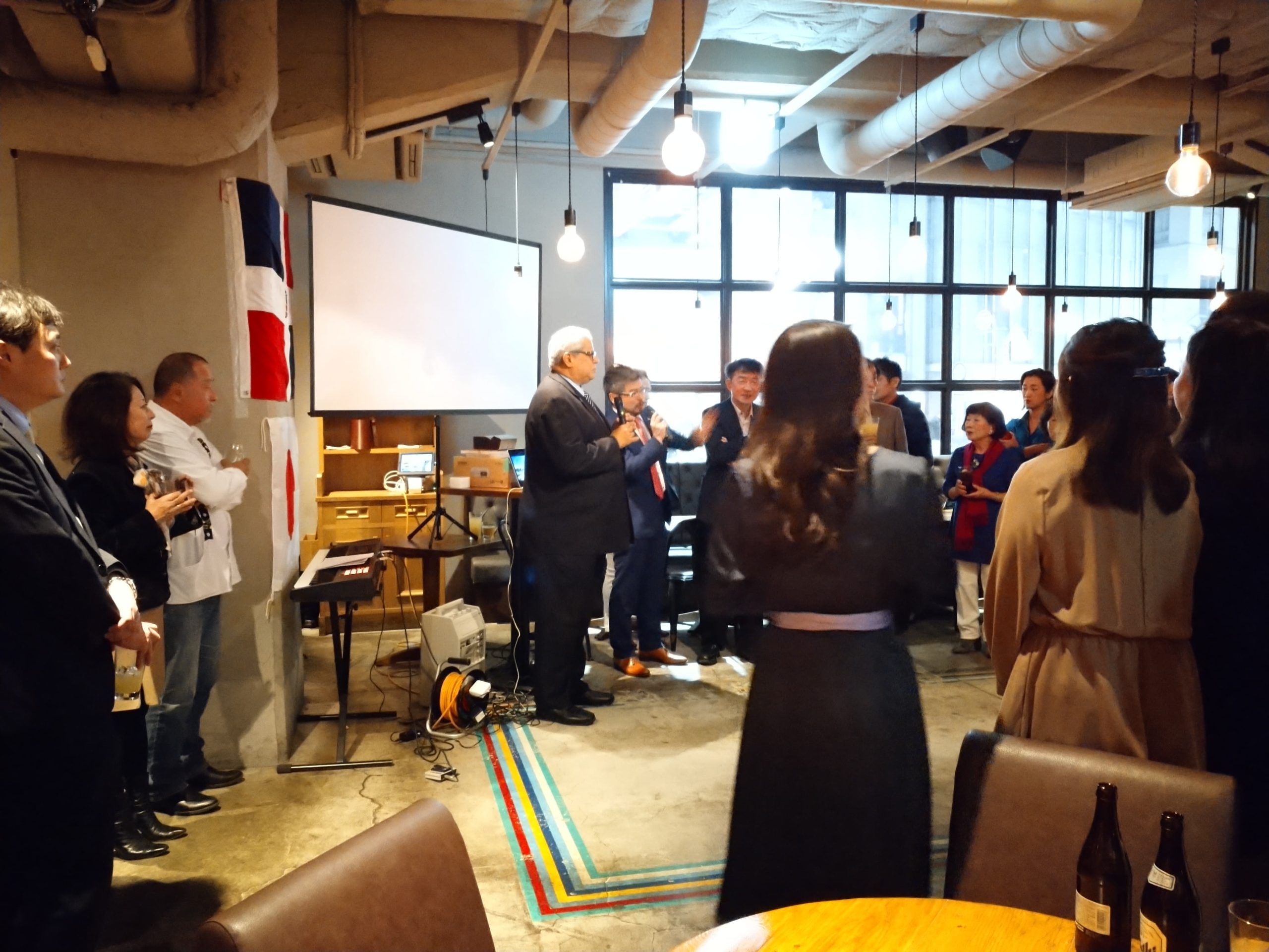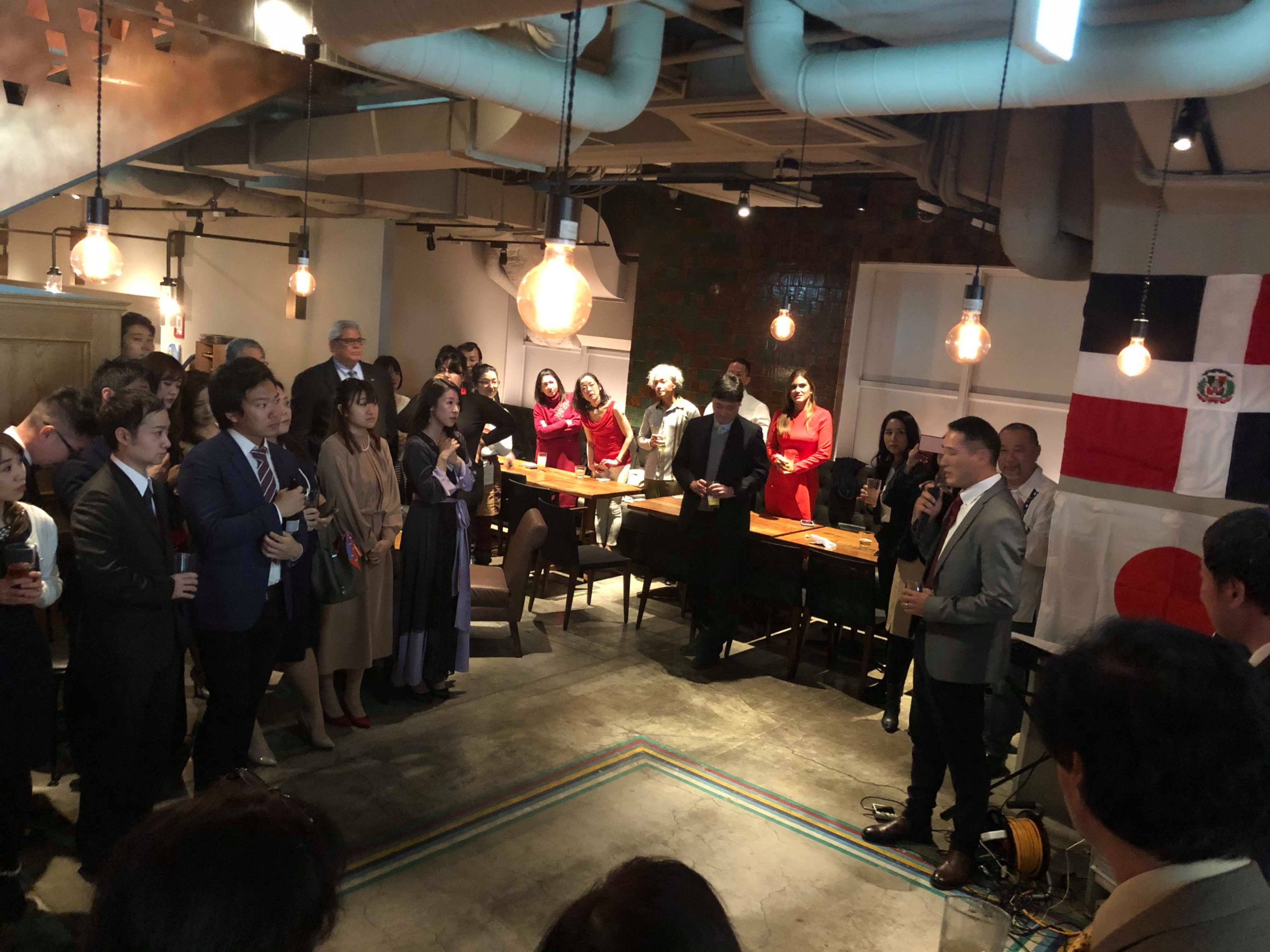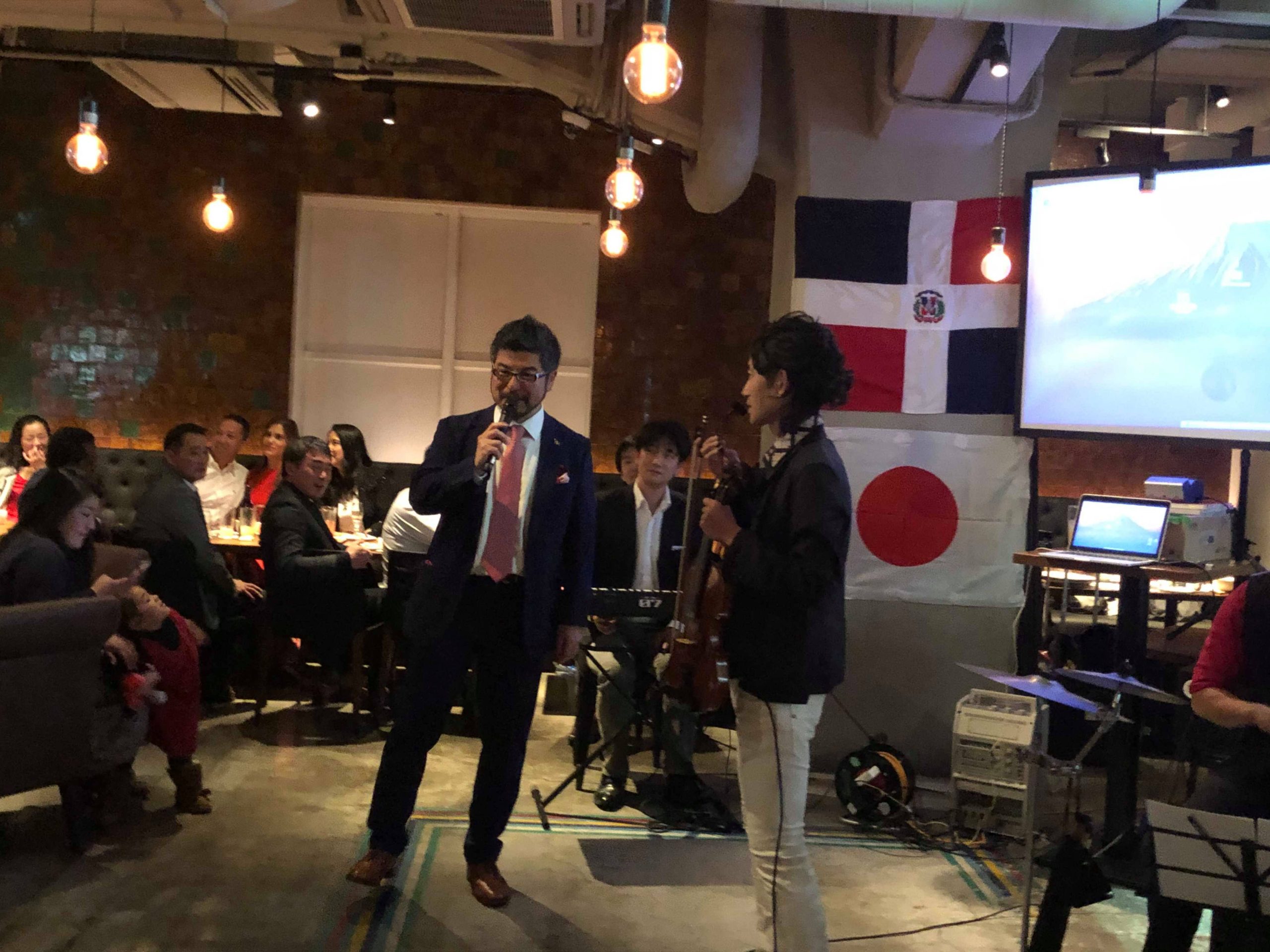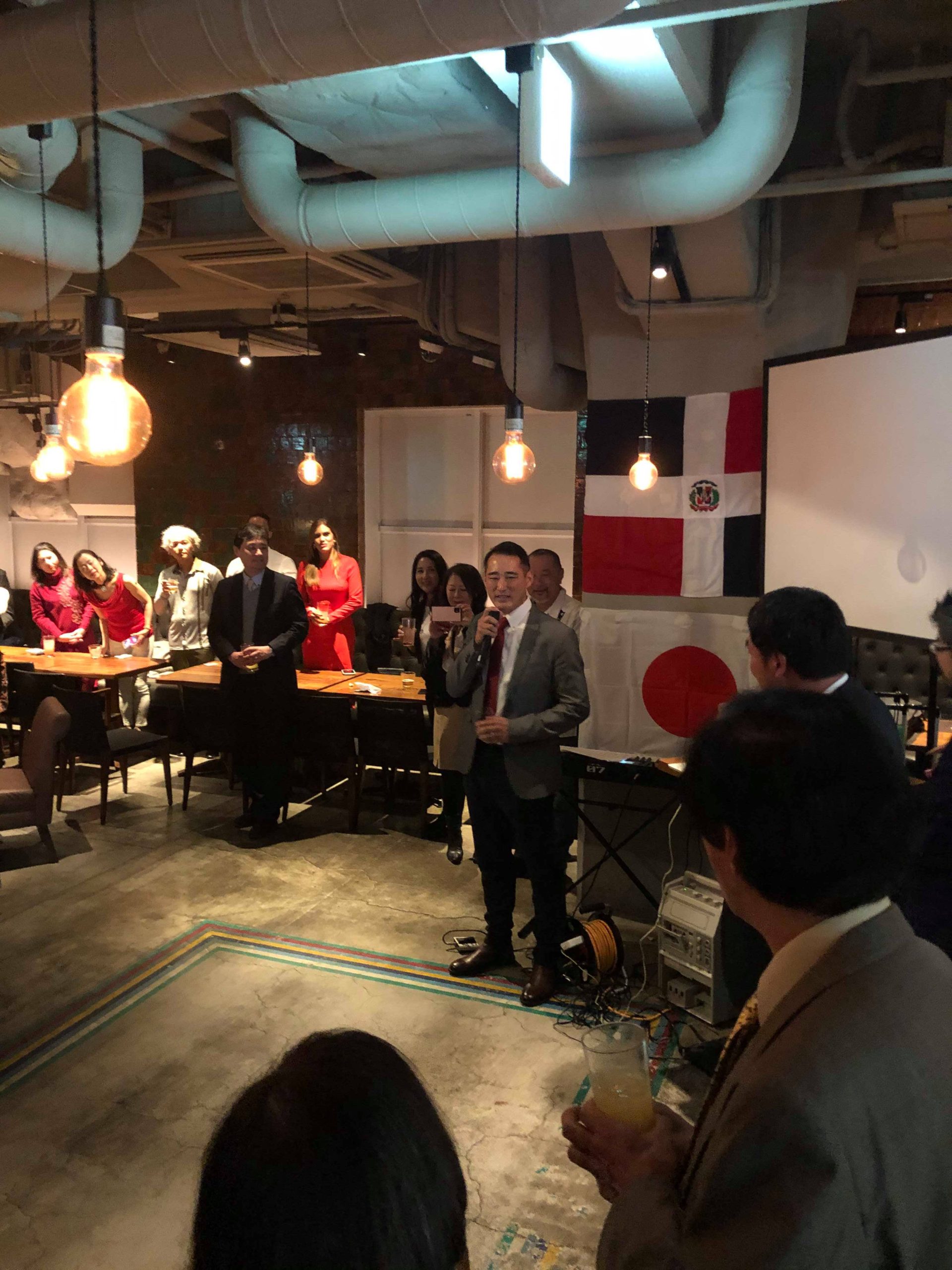 12月10日(火)、銀座のTORO TOKYOレストランにおいて、2019年の「忘年会」を開催致しました。今回で3回目となる本会には計102名(遂に100名超え!)の方々にご参加頂きました。ドミンゲス駐日ドミニカ共和国大使閣下のご挨拶に始まり、川代Japan Export Import社長の乾杯、小河シェフのドミニカン料理紹介のあと、松戸市文化観光国際課さまのプレゼンテーション、バイオリニストTSUMUZIさんの演奏、そして最後はLuis Sasakiさんによるドミニカン・ダンスショーと、正に「大盛り上がり」の会となりました。今回は、ドミニカンボクサーのブラディミール・バエスさんをはじめ、在日ドミニカンの方々も多くご参加されたほか、医療法人社団世航会からも多くのお医者様が駆けつけて下さいました(中島理事長誠に有難うございました)。今後も当協会は日本とドミニカ共和国両国間の「真の友好親善関係」構築のため、地道な活動を続けて行きたいと思います! 引き続き皆様のご理解とご協力のほど、宜しくお願い致します。また、改めて今回ご参加頂いた皆様、心より御礼申し上げます。