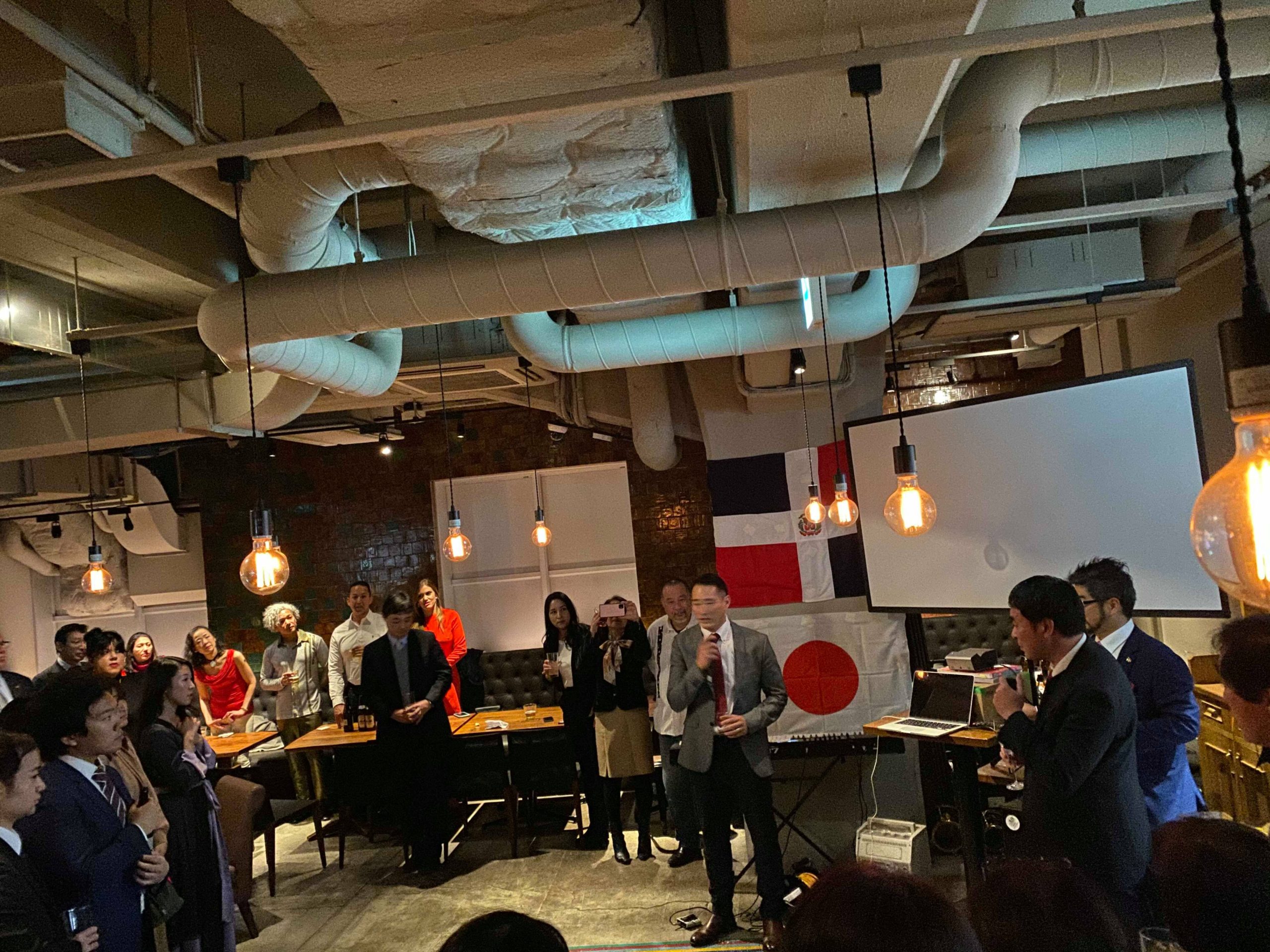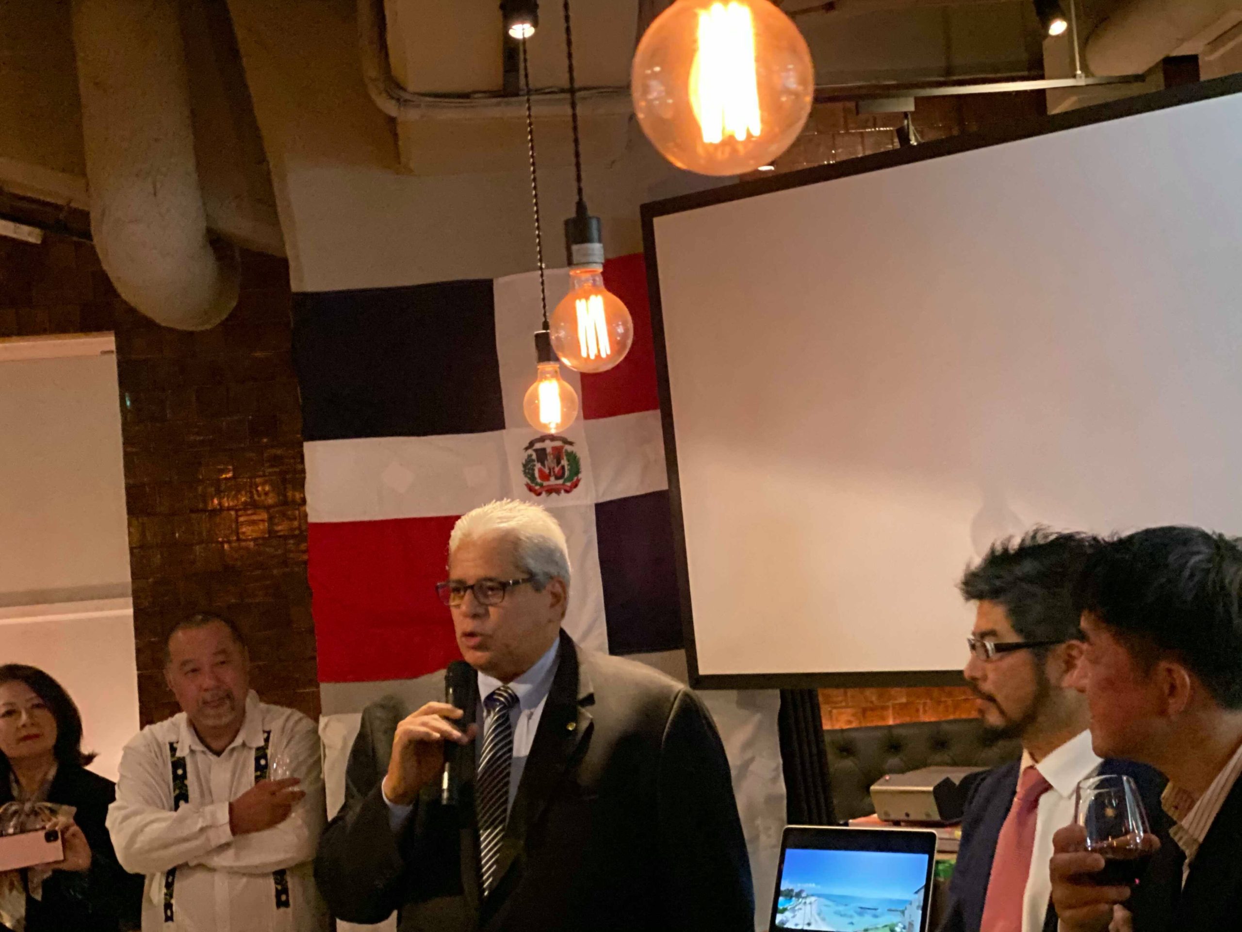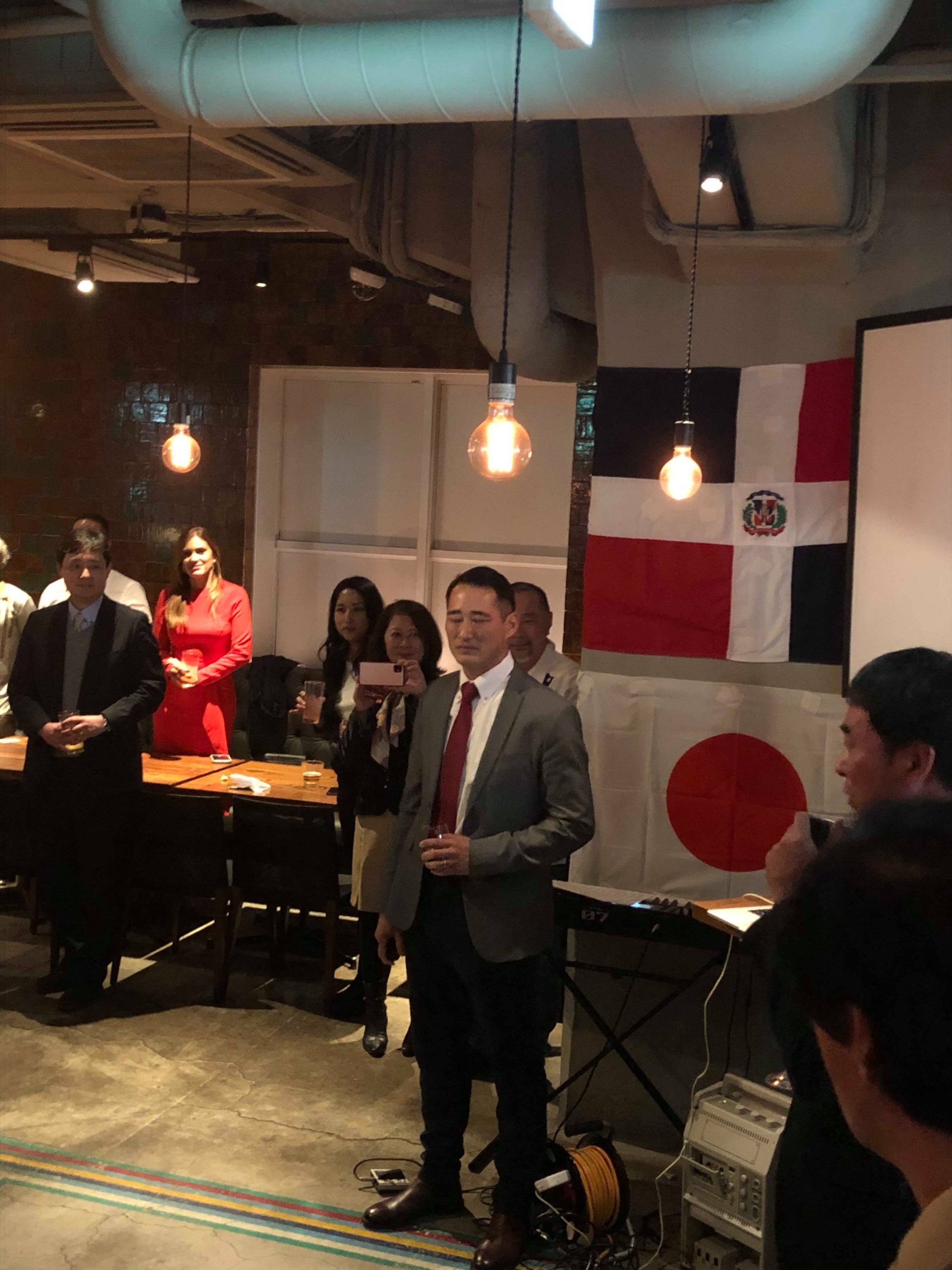 12月10日(火)、銀座のTORO TOKYOレストランにおいて、2019年の「忘年会」を開催致しました。今回で3回目となる本会には計102名(遂に100名超え!)の方々にご参加頂きました。ドミンゲス駐日ドミニカ共和国大使閣下のご挨拶に始まり、川代Japan Export Import社長の乾杯、小河シェフのドミニカン料理紹介のあと、松戸市文化観光国際課さまのプレゼンテーション、バイオリニストTSUMUZIさんの演奏、そして最後はLuis Sasakiさんによるドミニカン・ダンスショーと、正に「大盛り上がり」の会となりました。今回は、ドミニカンボクサーのブラディミール・バエスさんをはじめ、在日ドミニカンの方々も多くご参加されたほか、医療法人社団世航会からも多くのお医者様が駆けつけて下さいました(中島理事長誠に有難うございました)。今後も当協会は日本とドミニカ共和国両国間の「真の友好親善関係」構築のため、地道な活動を続けて行きたいと思います! 引き続き皆様のご理解とご協力のほど、宜しくお願い致します。また、改めて今回ご参加頂いた皆様、心より御礼申し上げます。