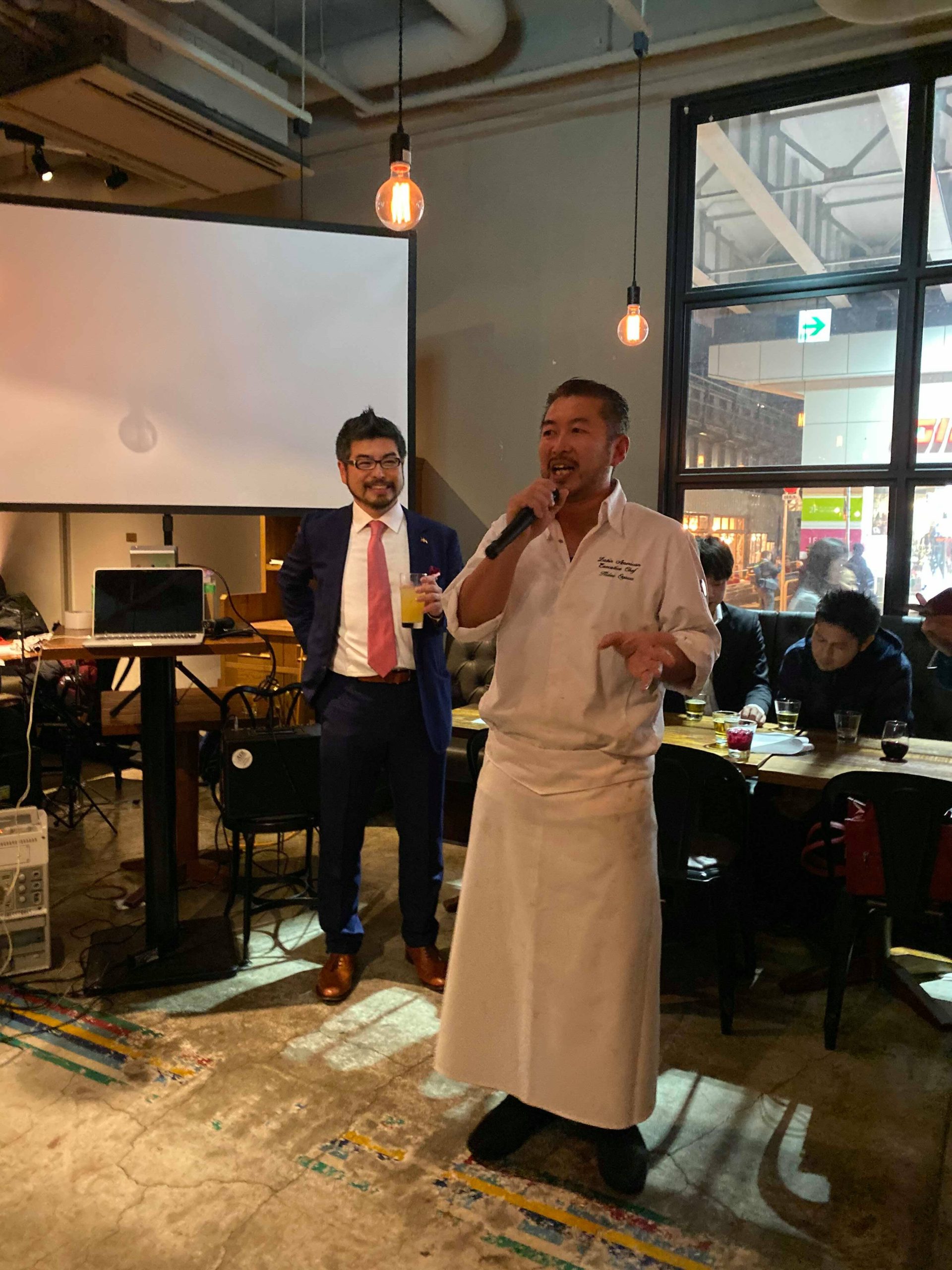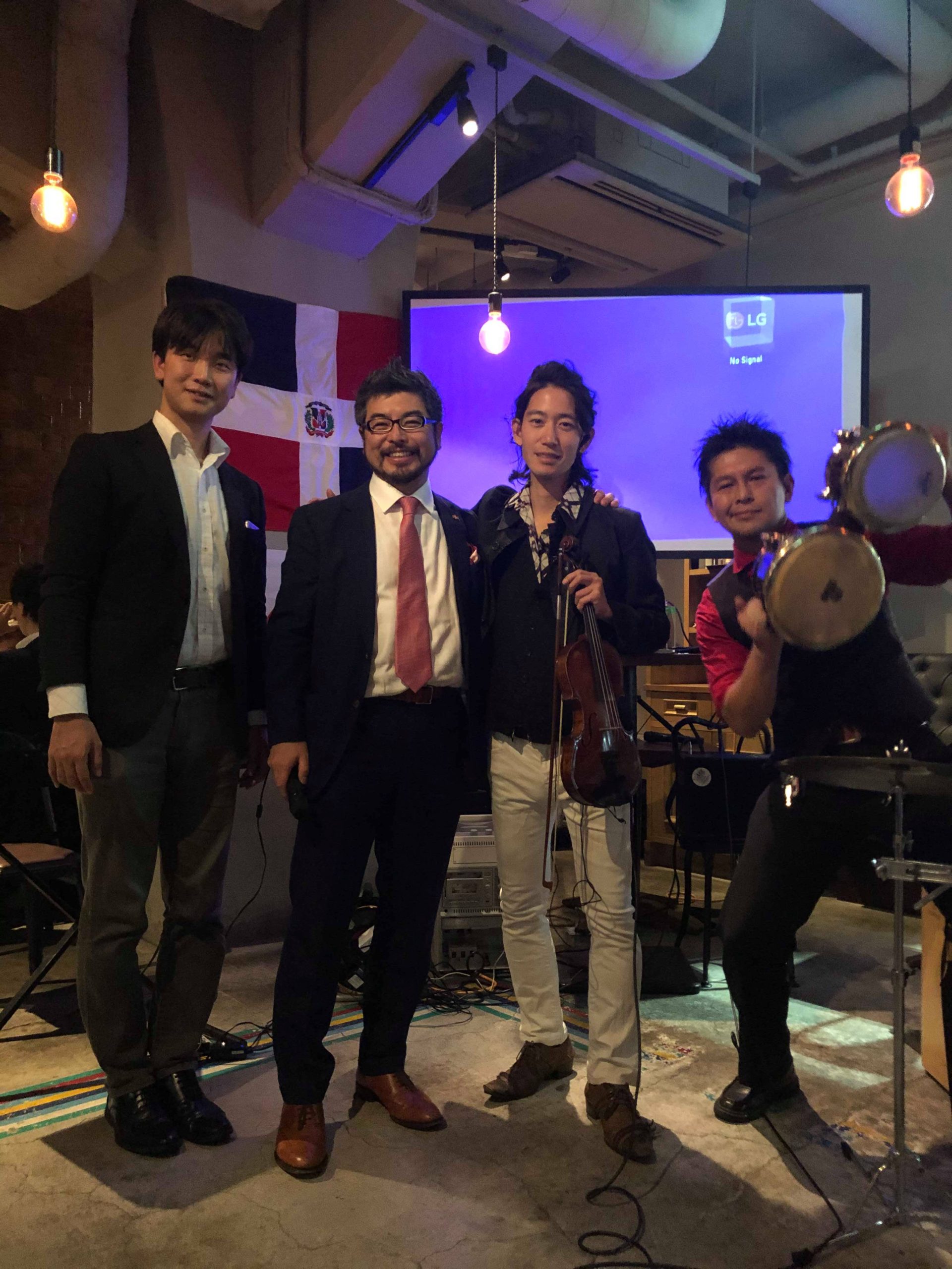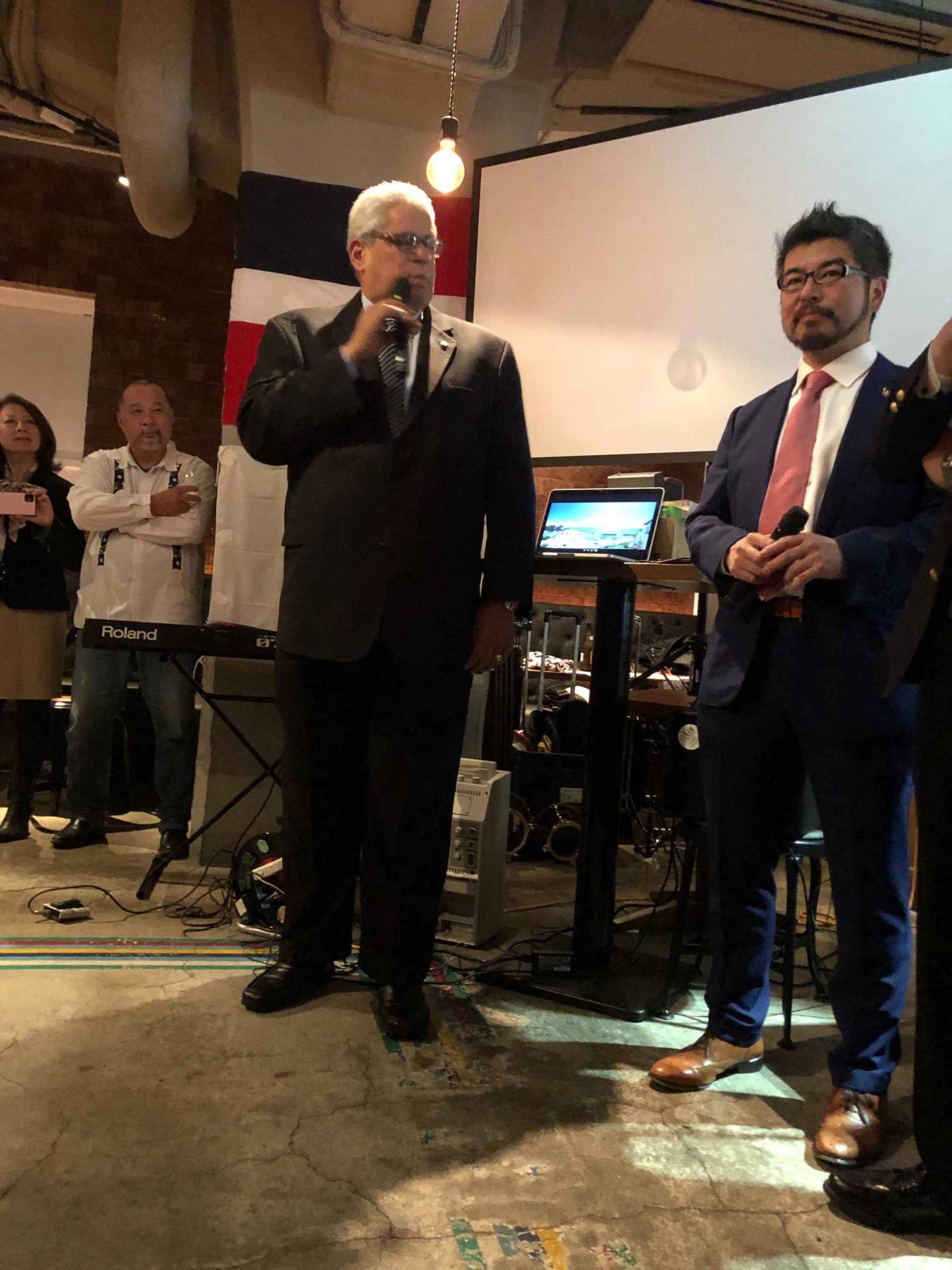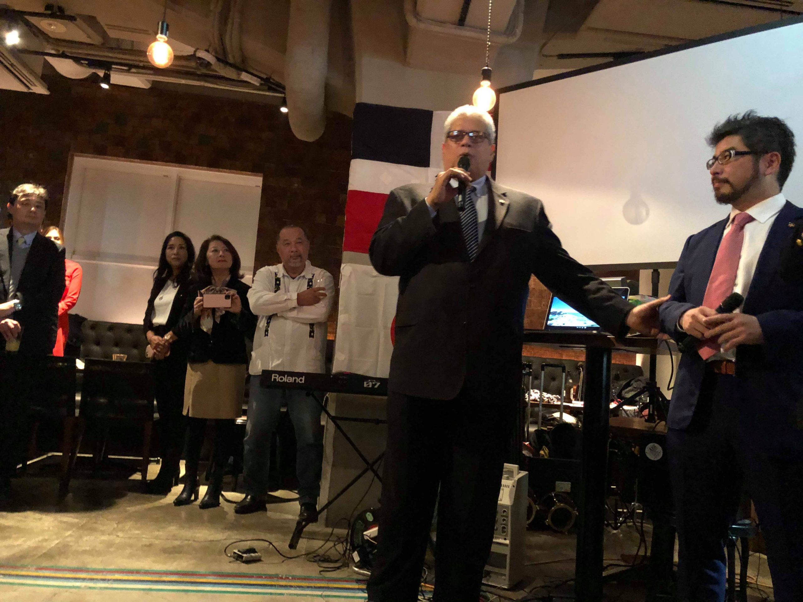 12月10日(火)、銀座のTORO TOKYOレストランにおいて、2019年の「忘年会」を開催致しました。今回で3回目となる本会には計102名(遂に100名超え!)の方々にご参加頂きました。ドミンゲス駐日ドミニカ共和国大使閣下のご挨拶に始まり、川代Japan Export Import社長の乾杯、小河シェフのドミニカン料理紹介のあと、松戸市文化観光国際課さまのプレゼンテーション、バイオリニストTSUMUZIさんの演奏、そして最後はLuis Sasakiさんによるドミニカン・ダンスショーと、正に「大盛り上がり」の会となりました。今回は、ドミニカンボクサーのブラディミール・バエスさんをはじめ、在日ドミニカンの方々も多くご参加されたほか、医療法人社団世航会からも多くのお医者様が駆けつけて下さいました(中島理事長誠に有難うございました)。今後も当協会は日本とドミニカ共和国両国間の「真の友好親善関係」構築のため、地道な活動を続けて行きたいと思います! 引き続き皆様のご理解とご協力のほど、宜しくお願い致します。また、改めて今回ご参加頂いた皆様、心より御礼申し上げます。