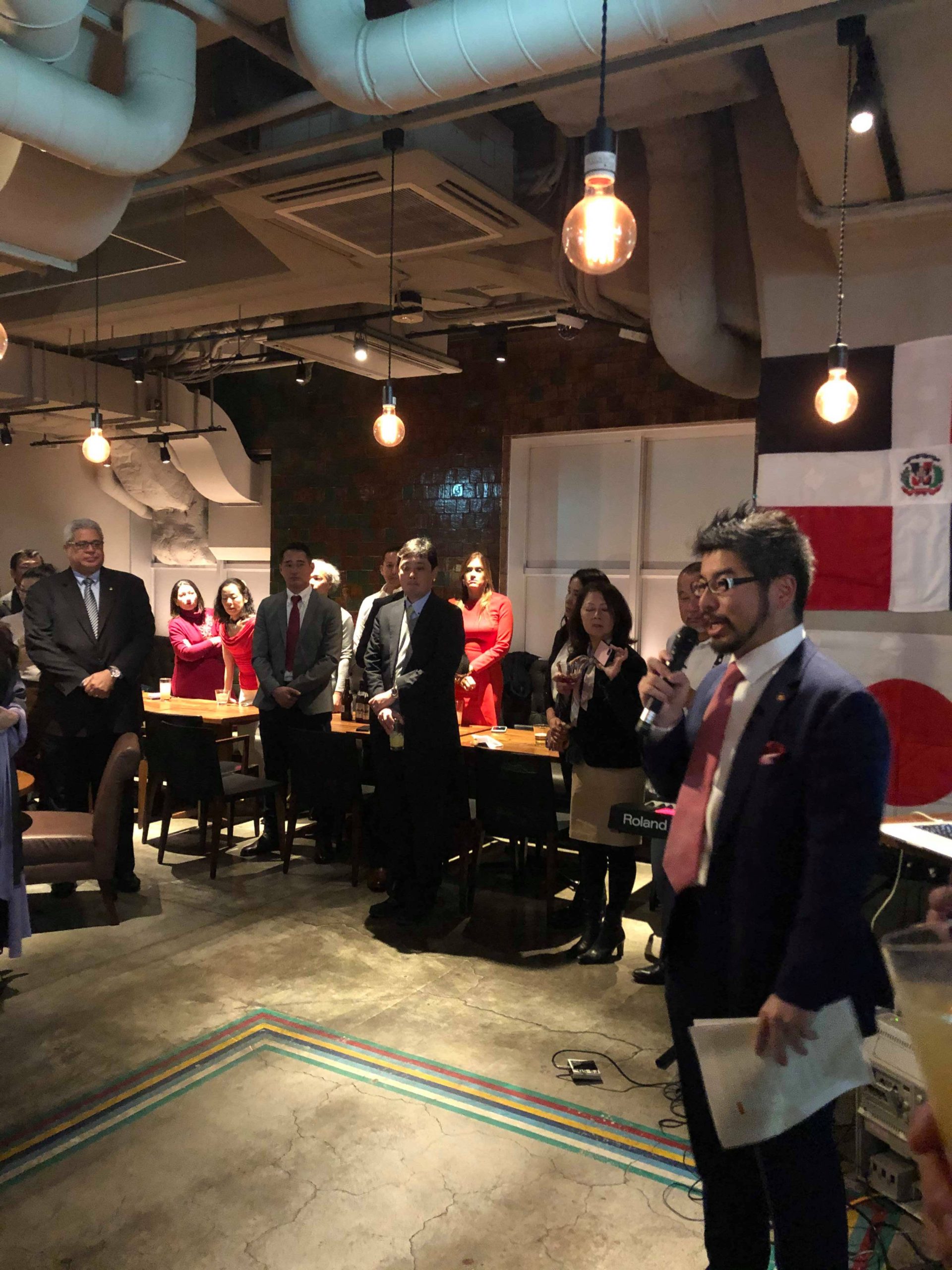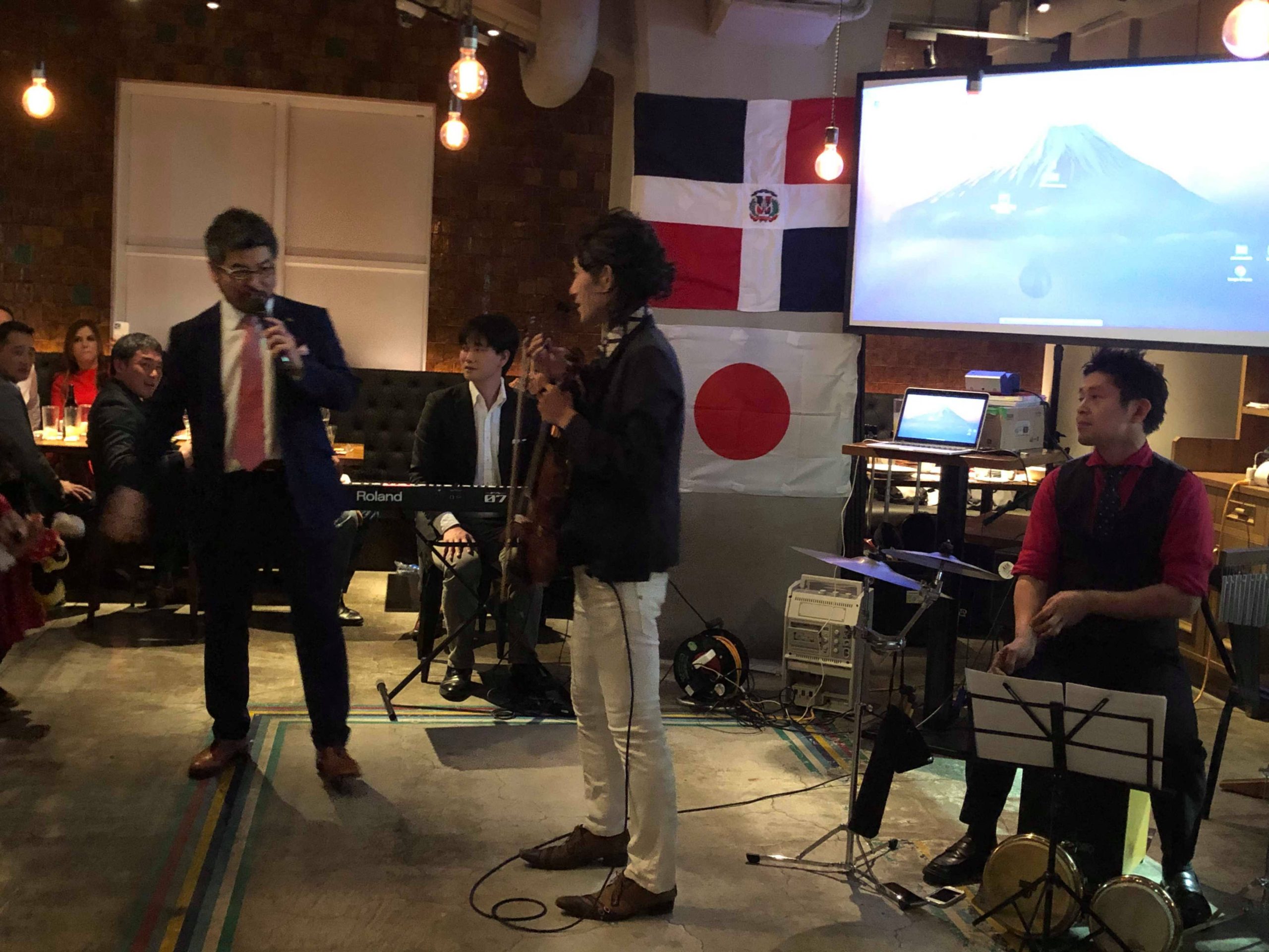 En pasado 10 de Diciembre, celebramos fiesta de Navidad, 2019 en el restaurante TORO TOKYO. Había más que 100 personas (102 participantes) que han participado a la tercera fiesta anual (muchas gracias por los que se unieron a nuestra fiesta!). Después del discurso por el Sr. Embajador Héctor Domínguez, los series de actividades se realizamos incluido; el brindis por el Sr. Noboru Kawashiro de Japan Export Import, la introducción de las comidas dominicanas por el Sr. Hideo Ogawa (el chef principal del restaurante), la presentación de las actividades con la República Dominicana por la la División Internacional de Cultura y Turismo de la Ciudad de Matsudo, actuación de la música latina por el violinista TSUMUZI y finalmente, el espectáculo de danza por el Sr. Luis Sasaki. En esta fiesta, han participado un número de dominicanos, incluido el Sr. Bladimir Baez, el boxeador profesional de la República, que se quedan en Japón y, lo que es más importante, el Sr. Koki Nakajima, presidente de la Oficina Dental de Sekokai, llevó a la fiesta a numerosos médicos. La asociación desea continuar nuestros esfuerzos constantes para construir una “verdadera amistad” entre Japón y la República Dominicana. Estamos profundamente agradecidos con su continuo apoyo y comprensión de nuestras actividades. ¡Muchas gracias!