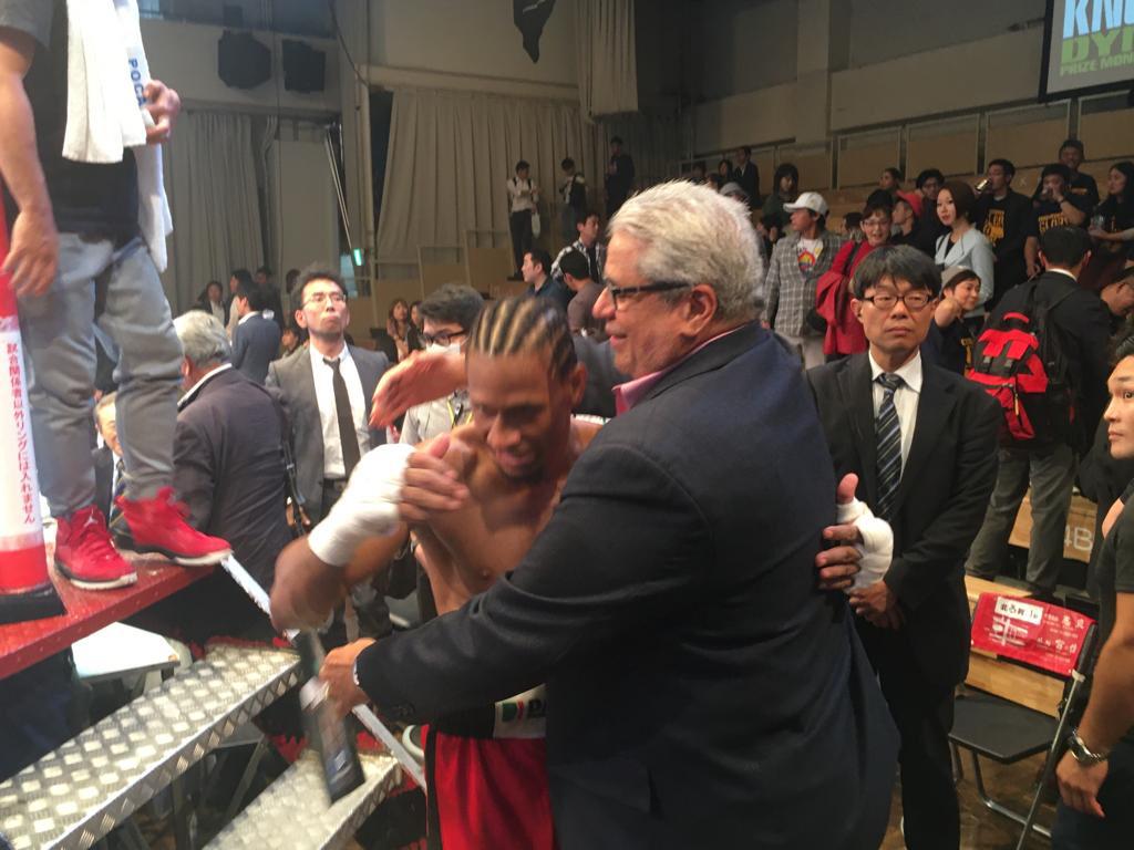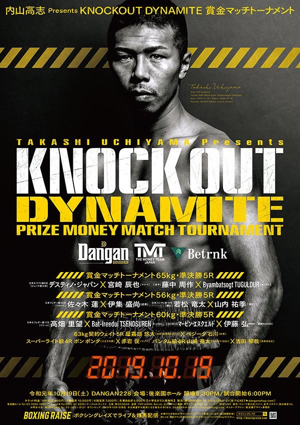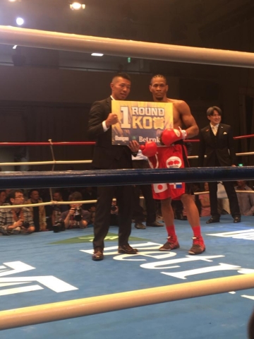 去る10月19日、Knockout Dynamiteトーナメントに出場したデスティノ・ジャパン選手(本名ブラディミール・バエス)が宮崎辰也選手(マナベ)に1回KO勝ちを収めました!余りにも早い試合展開でしたが、試合後しっかり相手選手を労っているデスティノ選手のスポーツマンシップが印象的でした。同選手が出場した65キロ級決勝は2020年1月11日に後楽園ホールで行われます!皆さん是非一緒に応援に行きましょう!デスティノ選手お疲れさまでした!!