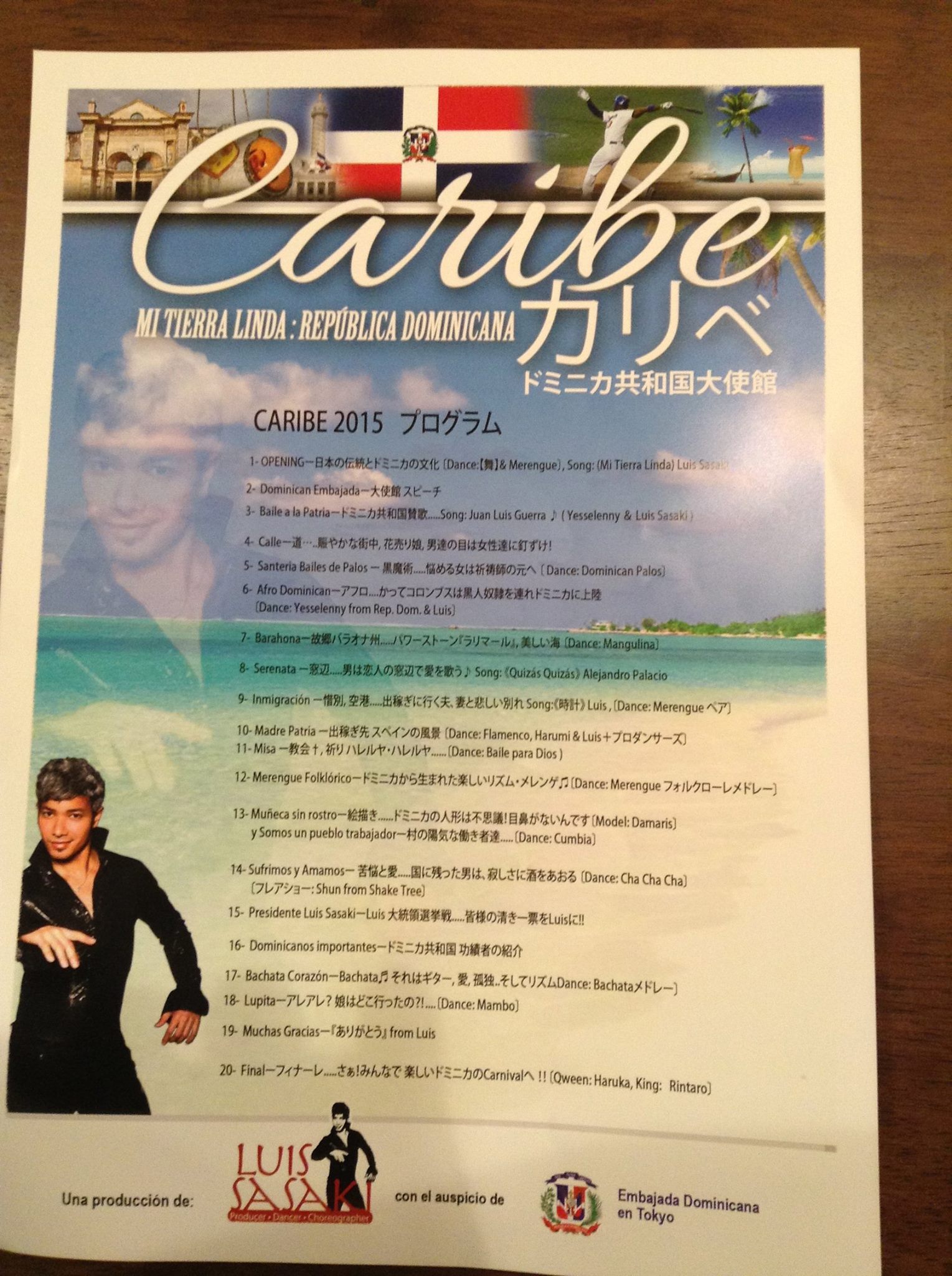 (Memoria de 2015) En 23 de Noviembre, visitamos un espectácro de baile dominicano “El Caribe” por Luis Sasaki, uno de grandes lideres de la escena de baile latino en Japón. La serie de bailes como merengue, bachata, salsa eran como “tiovivo.” ¡Impressionante!