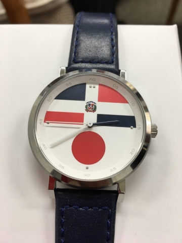 En pasado 8 de mayo, tenía una gran oportunidad para ver los relojes con estilo dominicanos, diseñado y traído por el Sr. Hijiri Orihara de AccessBio Corporation y el Sr. Masahiko Suda de la Asociación Turismo de la Ciudad de Matsudo con el Sr. Embajador Héctor Domínguez y el Sr. Noboru Kawashiro, el presidente y CEO de Japan Export & Import en el despacho del Sr. Embajador. La ciudad de Matsudo, que aceptará el equipo nacional dominicano de Softball durante de los juegos olimpicos, ha adaptado el reloj como regalos para souvenirs a partes relacionadas. Parece que cada ciudad anfitriona para los equipos dominicanos en cada evento en juegos olímpicos van a preparar algunas cosas. Nuestra asociación les va a ayudar desde el punto de relaciones públicas.