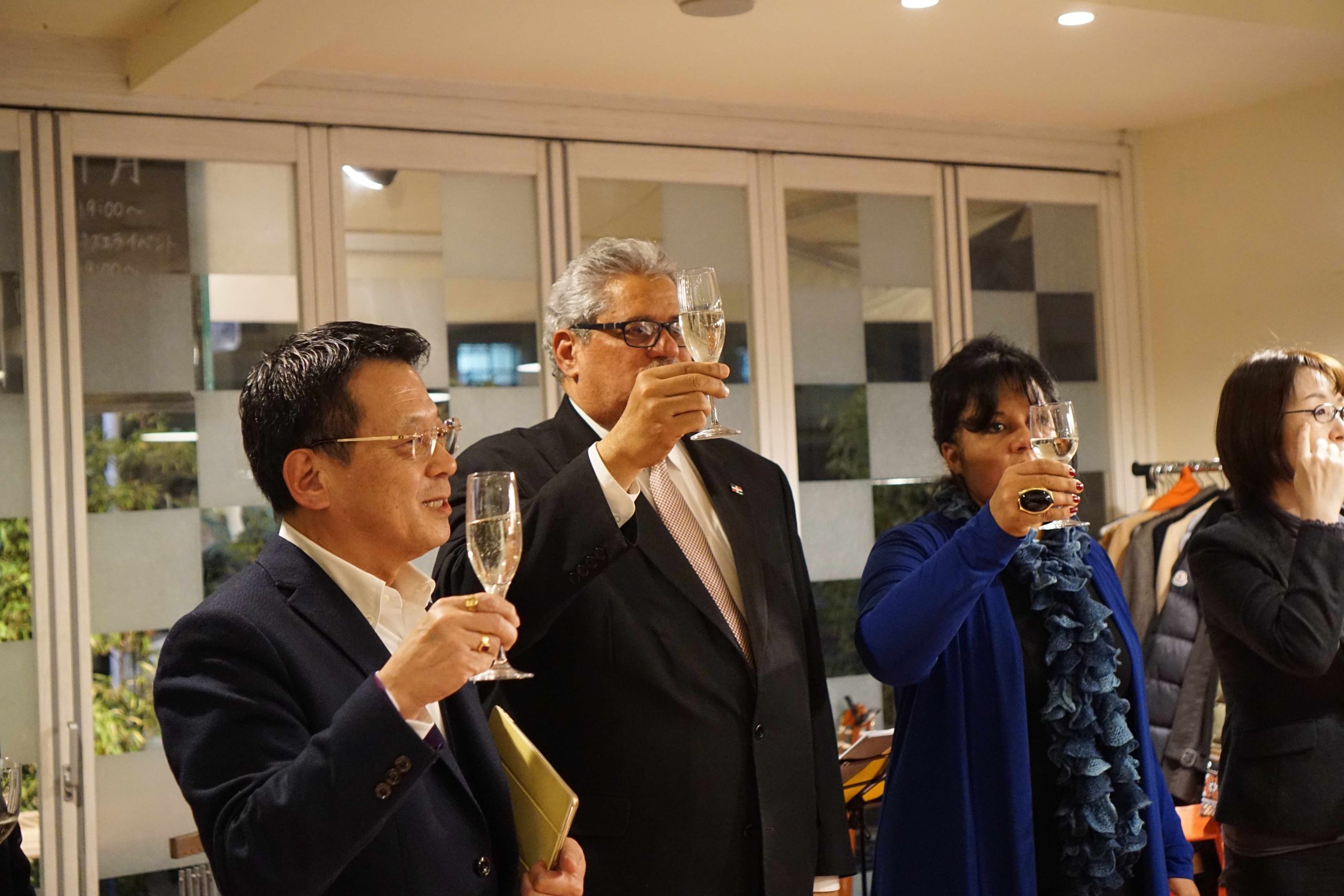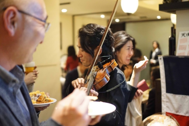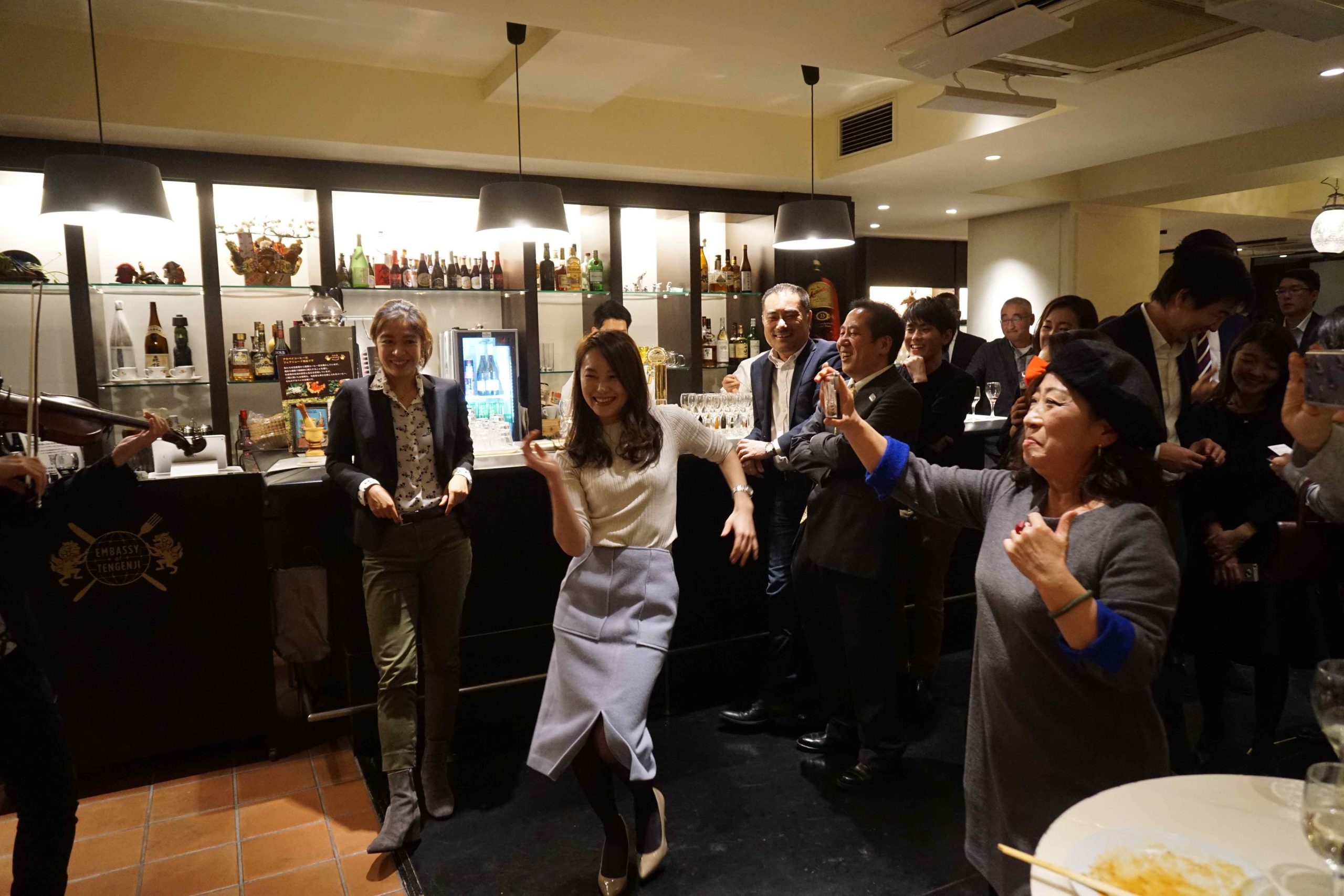12月11日(月)、広尾の「天現寺大使館」レストランにて「TSUMUZI x 一般社団法人日本・ドミニカ共和国友好親善協会コラボ忘年会パーティー」を開催致しました!! 当日はエクトール・ドミンゲス駐日ドミニカ共和国特命全権大使、令夫人、バイオリニストのTSUMUZIさん、ドミニカ共和国にて国際協力活動をされている廣瀬芽里さん、ダンサーのLuis Sasakiさんをはじめとするゲストの方々も含め、60名以上の方々にお越し頂きました! 皆様本当に有難うございました。ドミンゲス大使のご挨拶・乾杯に始まり、デザートを含む7種類のドミニカン料理、TSUMUZIさんバンドの演奏、廣瀬さんの協力活動のプレゼンテーション、Luis Sasakiさんのダンスレッスンを皆様心より楽しんで頂きました! 最後は、日本チャンピオン戦を控えているボクサーのブラディミール・バエス(Destino Japan)さんにスピーチもして頂きました。今回この様な盛大なパーティーを開催できましたのも、関係者皆様のお力添えがあってのことであると存じます。2018年も皆様楽んで頂ける様、様々なイベントを開催してゆきたいと思います。ご来場の皆様、本当に有難うございました。