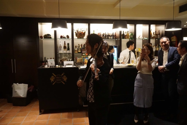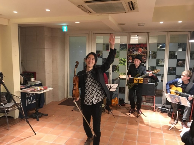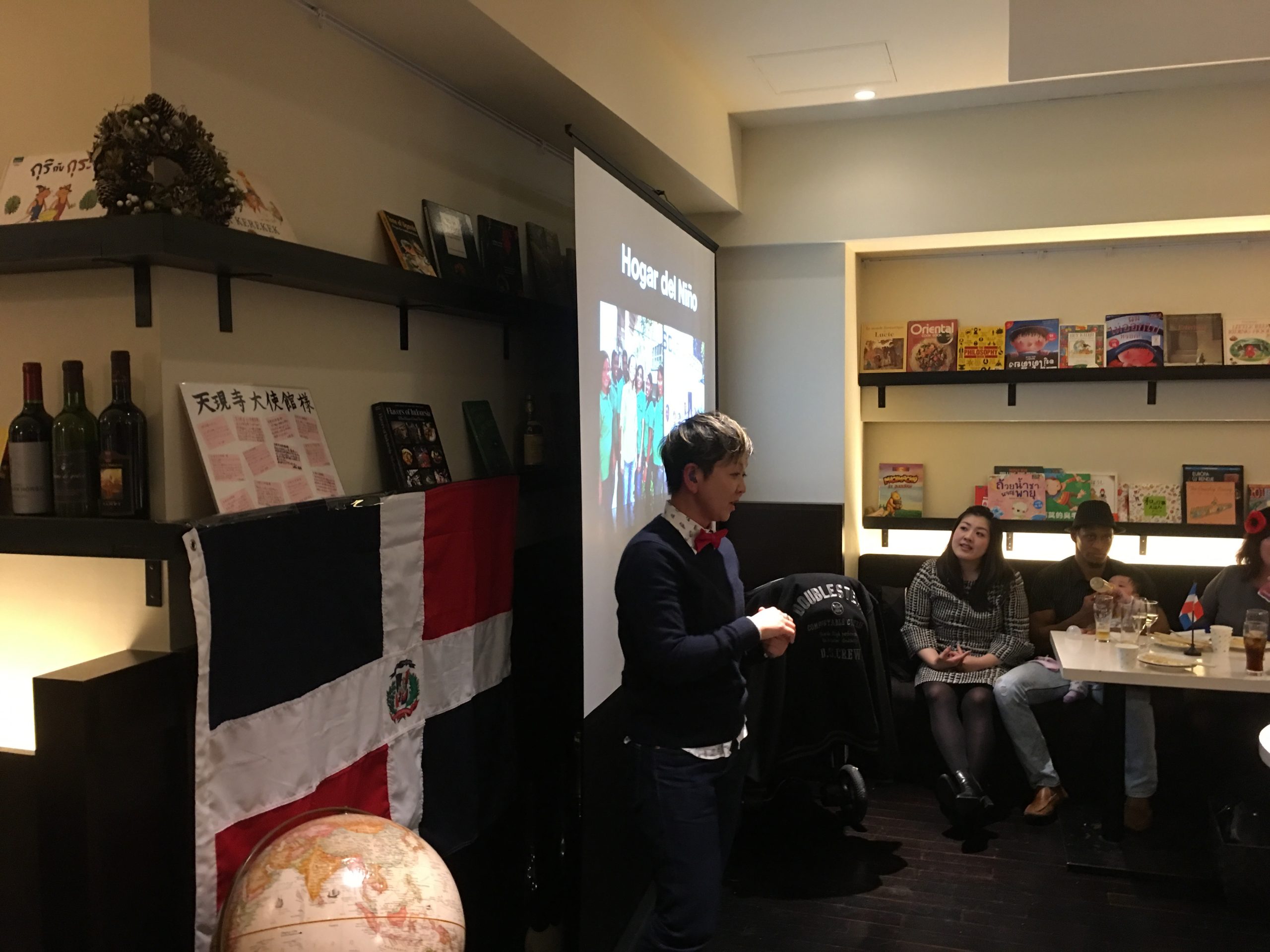 En 11 de Diciembre, en el restaurante de la Embajada de Tengenji, realizamos la fiesta de Navidad vía colaboración con un violinista TSUMUZI y su banda. Comienza con saludos bienvenidos por honorable Embajador Extraordinario y Plenipotenciario de la República Dominicana en Japón, Sr. Héctor Domínguez, más que 60 participantes se disfrutaron la actuación musical por la banda de TSUMUZI, la presentación por Srta. Meri Hirose que se ha dedicado a apoyando a la comunidades sordas en la República Dominicana, la lección de baile dominicano por Sr. Luis Sasaki, y por supuesto, las comidas y bebidas dominicanas. Terminamos la fiesta con la palabra por Sr. Vladimir Baez, el boxeador dominicano que está esperando su próxima pelea por el campeonato japonés. Gracias por sus participaciones y apoyos para que esta gran fiesta se realizara. Asociación de la Amistad Dominico-Japonesa continuará a organizar los eventos que todo el mundo puede disfrutarse en 2018. Muchas gracias por su colaboración y presencia.