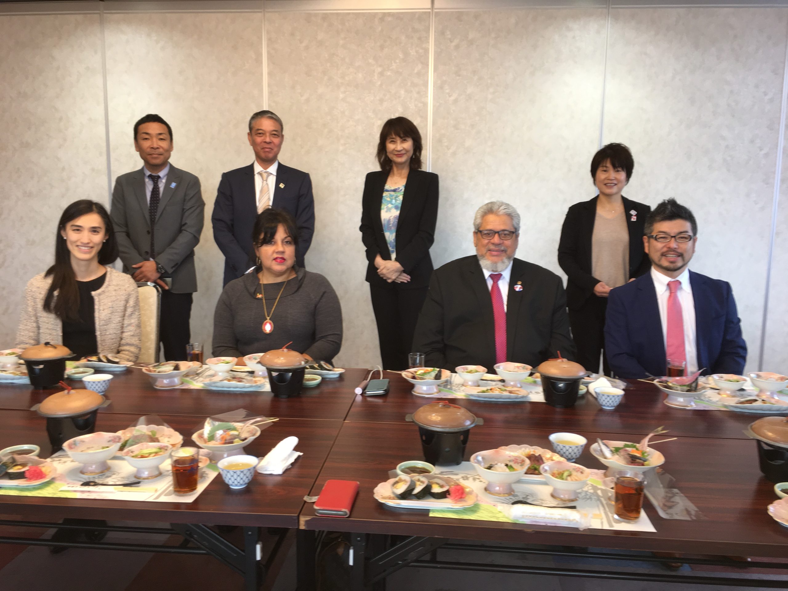 11月23日、ドミンゲス駐日大使及び同大使夫人と共に、広島県北広島町を訪問しました。北広島町は、2020年東京オリンピックにおけるドミニカ共和国選手団(柔道、陸上競技)の事前合宿地で、今回箕野町長をはじめ、同町職員及び、ドミニカ人選手が練習する町内施設の管理をされている「どんぐり財団」の皆様とお話する機会に恵まれました。柔道チームは既に「柔道グランドスラム大阪2018」出場のため、11月10日〜22日の間、同町に滞在し、町の方々と沢山交流をされ、町を“明るく”されたそうです(笑)。来年は横浜で「IAAF世界リレー2019」が開催され、ドミニカ共和国選手団も参加予定で、北広島市に滞在するとのことです。東京オリンピックを控えて、スポーツの世界でも益々両国間の関係が強化されそうですね!