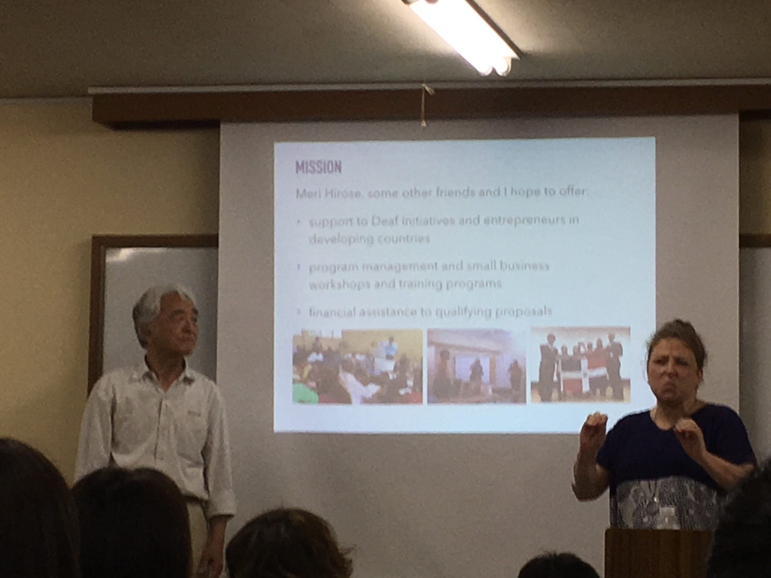 El 13 de mayo, participé al evento organizado por un grupo, “Yes, deaf can!” (Sí, los sordos pueden!) que ayuda a la autosuficiencia de las personas sordas en el mundo a través de la microfinanciación. Meri Hirose, líder del grupo, ha llevado a cabo varios proyectos para ayudar a las escuelas de sordos en República Dominicana. En el evento, el Sr. Junichi Tanimura que también se involucra con las actividades en escuelas de sordos en la república, hizo una presentación sobre la realidad y la actualidad en la sociedad dominicana de sordos. Después, la Sra. Peggi Prosser, una co-presidenta del grupo, presentó sobre las actividades del grupo.  En el espacio del evento, los productos de la República Dominicana, incluyendo café, artesanías y joyería (larimar) fueron vendidos con fines benéficos.  Al final del evento, Meri Hirose, que acababa de regresar de República Dominicana a Japón, apareció sorprendentemente al evento y presentó sus actividades al público cuya mayoría también era sorda. Nuestra Asociación está más que feliz de trabajar junto con el grupo para ayudar a la sociedad sorda en República Dominicana.  Muchas gracias por la oportunidad para conocer a la sociedad sorda en la RD.