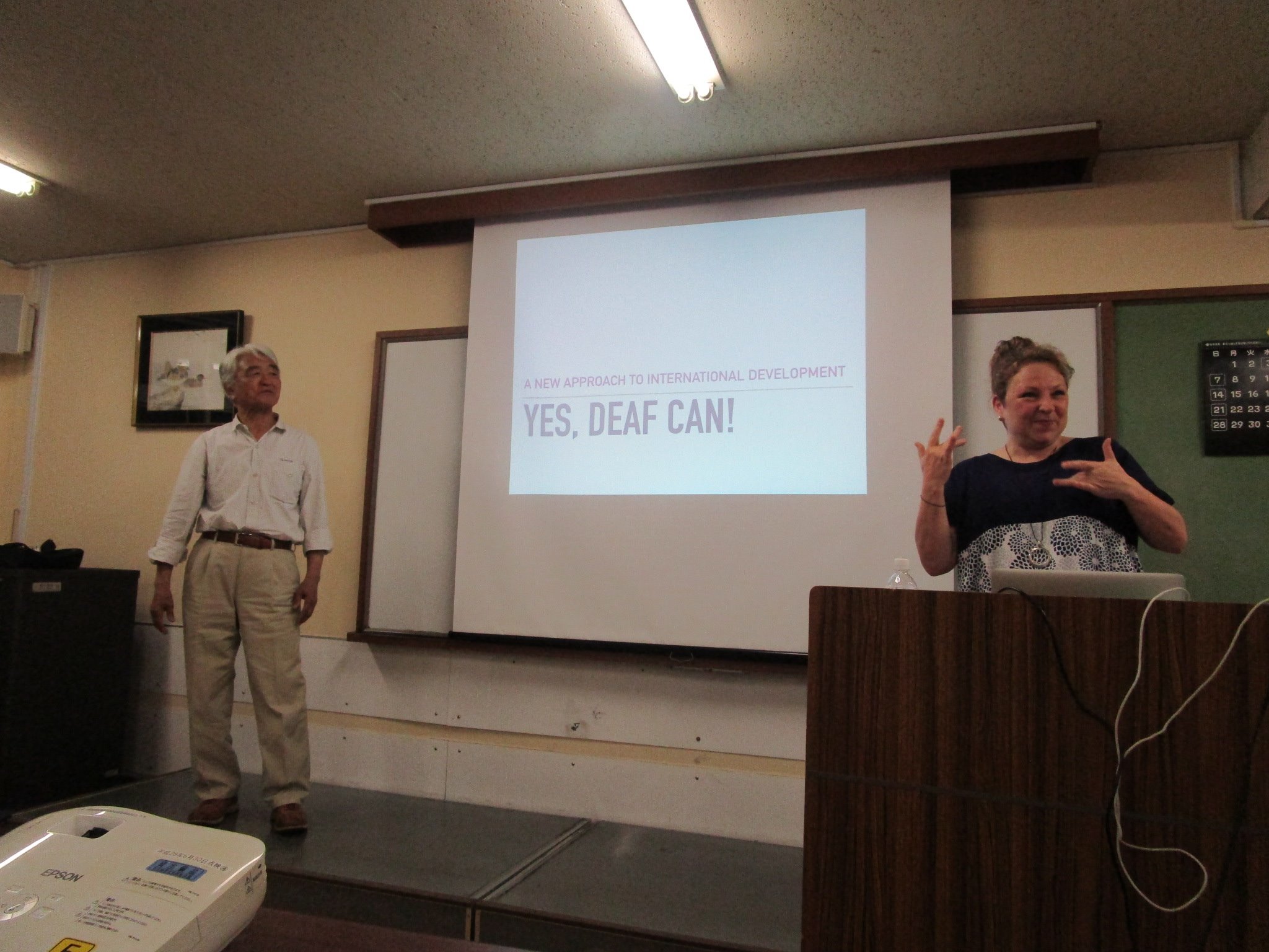 5月13日、東京都障害者福祉会館にて行われた任意団体”Yes, deaf can!”のイベントに出席してきました。同団体代表の廣瀬芽里(ひろせめり)さんは、ドミニカ共和国のろう学校を支援する為の活動をJICAボランティア及び個人専門家として行っています。当日のイベントでは、廣瀬さんの後に続き現地で支援活動をされている谷村潤一さんから、「ドミニカ共和国のろう社会をみて感じたこと」とのお題で、同団体の共同代表のペギー・プロッサーさんからは”Yes, deaf can!”の活動についてお話がありました。会場は超満員で、プレゼンターのお二人を含む殆どろう者の方々で占められていた中で、谷村さんがドミニカ共和国のろう学校支援やろう者に対する就業支援について、ペギーさんが同団体の設立趣旨について熱く語っておられました。思わず私も会場でドミニカ共和国の現状について、お話させて頂きました(手話通訳付)。会場では、ドミニカ共和国のコーヒー、民芸品、宝石(ラリマール)などが販売されていました(売上は現地での支援活動に使われるとのことです)。また、イベントの最後にはドミニカ共和国から帰国したばかりの廣瀬さんがサプライズで参加し、自らの活動についてお話をして下さいました。今後、当協会は”Yes, deaf can!”のドミニカ共和国における活動をサポートさせて頂きたいと思っております!